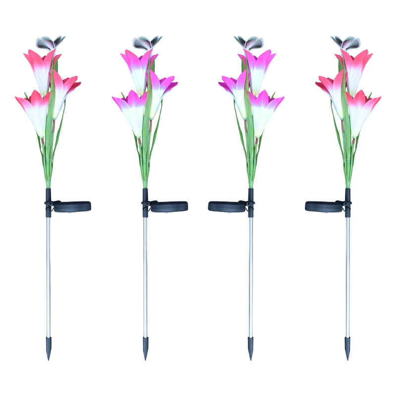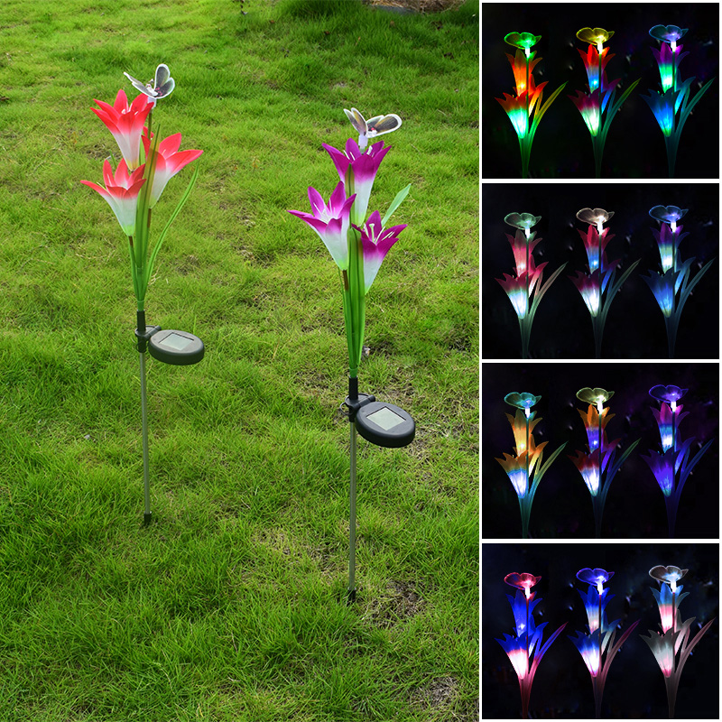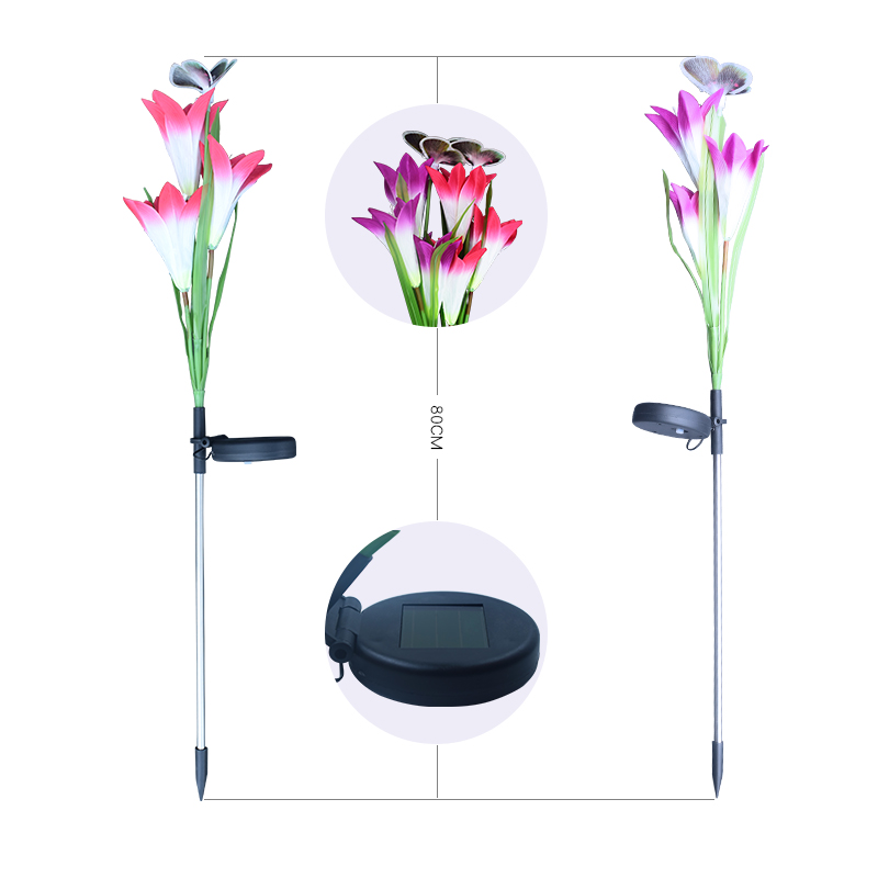Huichu solar 3-head lily flower lamp with butterfly led lily butterfly lamp garden decoration landscape lamp