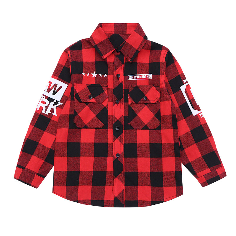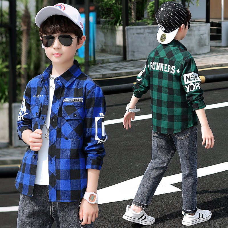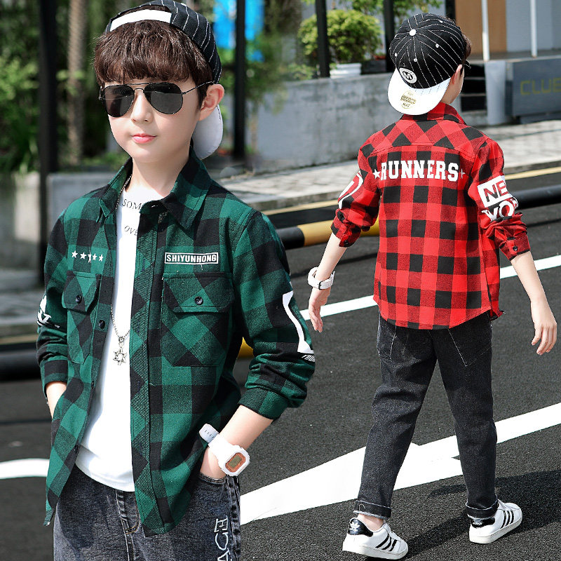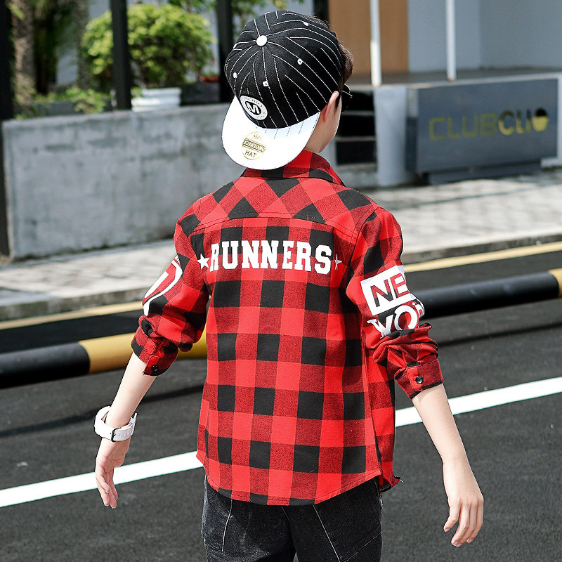Boys plaid shirt 2022 autumn style 12-year-old red 5 boys 6 Korean version 7 spring and autumn 8 long-sleeved 10 top shirt trendy