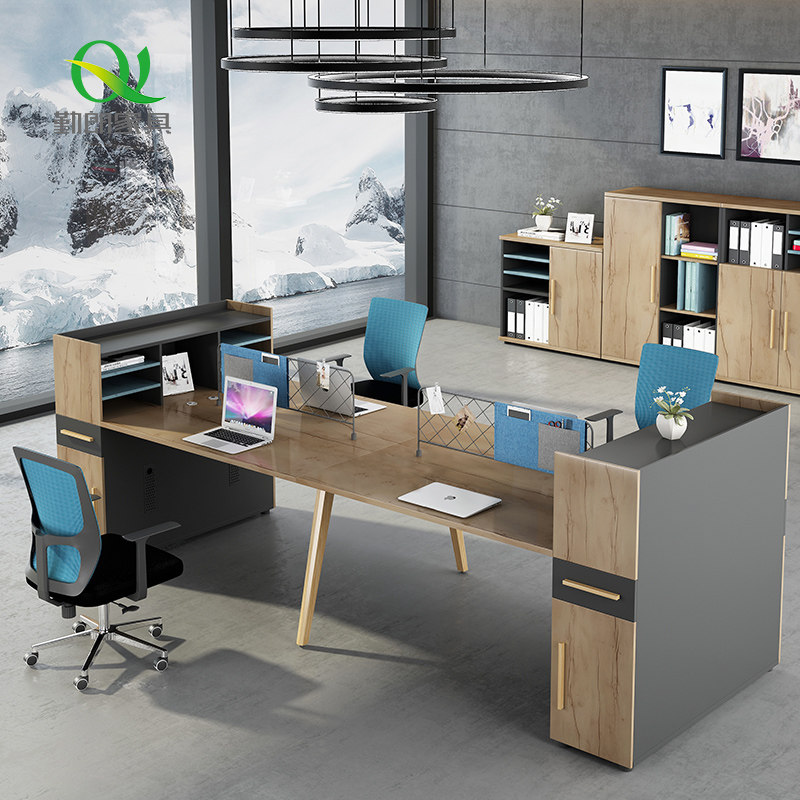 Diligent High Cabinet Staff Desk Brief Modern Finance Station Desk Multi-Storage Computer Desk Chair Combination