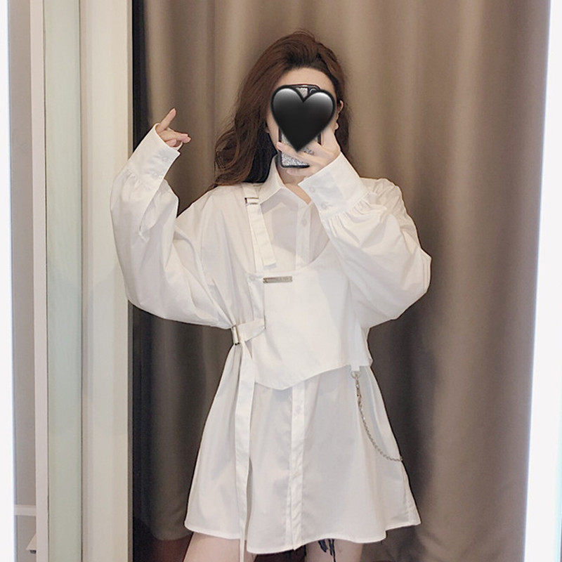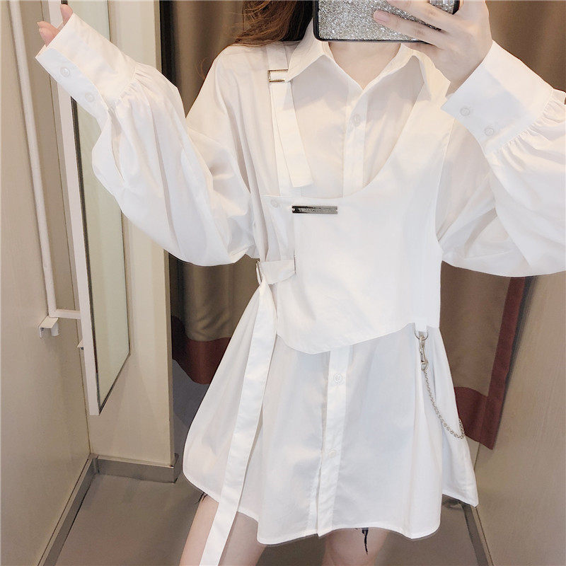 White shirt women's design sense niche spring and autumn 2022 new women's French chic fake two-piece mid-length top