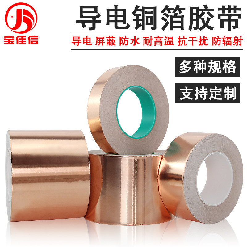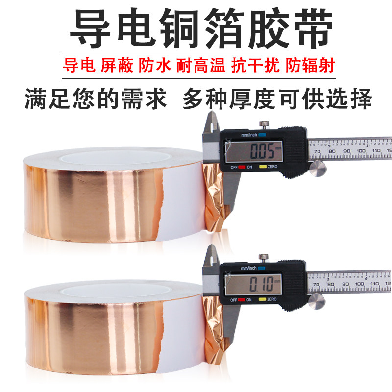 Double-sided conductive copper foil adhesive tape shielding strength electric heat 0 05 05 0 1mm thickened single-sided pure copper foil paper adhesive tape self-adhesive anti-interference signal reinforced conductive cloth adhesive tape