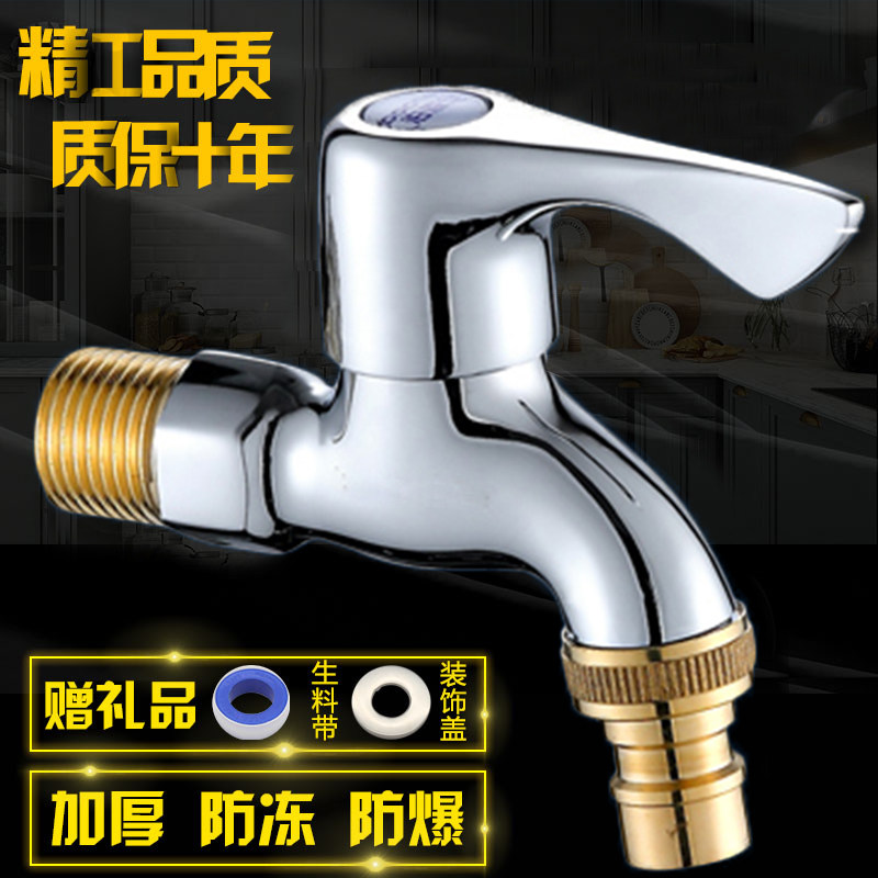 All-copper washing machine faucet 4 points double water quick open lengthened small handle explosion-proof stainless steel single cold water mesh mouth