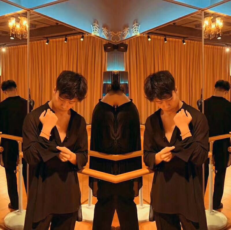 vv dance suit DUYQ2019 male style Latin dance practice long sleeve blouse front short rear long loose shirt 048