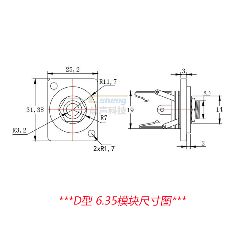 6 5 socket D-type installation welding big two-core mono TS female seat 6 35mm base Canon cabinet 86 panel