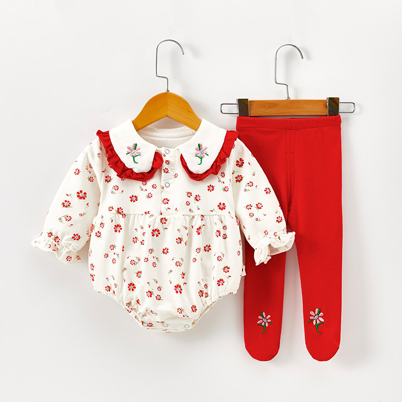 Newborn baby one-piece suit clothes go out princess clothes Autumn triangle climbing clothes Cute female baby long sleeve tide