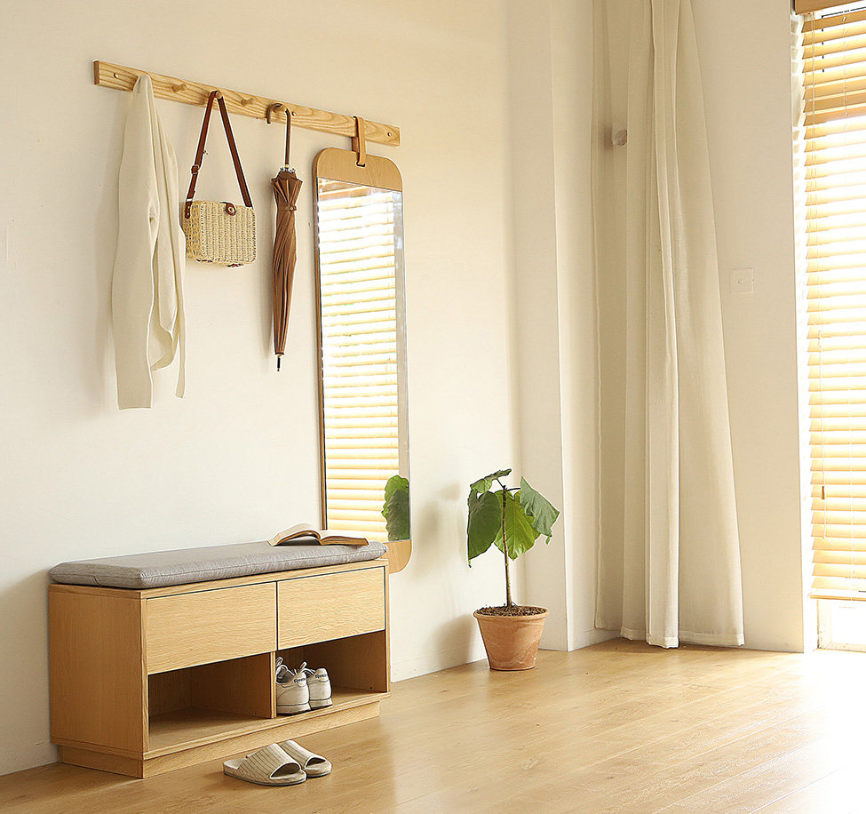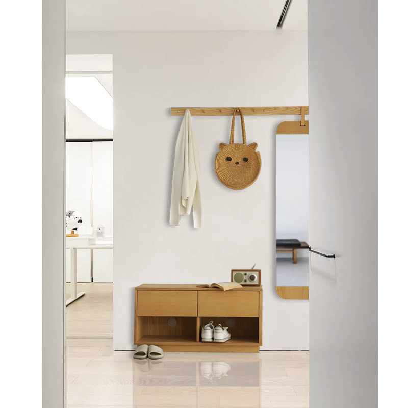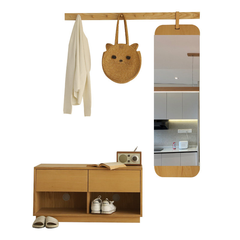 Creative Genguan Combination Multifunction Solid Wood Cloakhat Rack Wall Hanging Rod Containing Changing Shoes Stool Nordic Full Body Mirror All Over The World