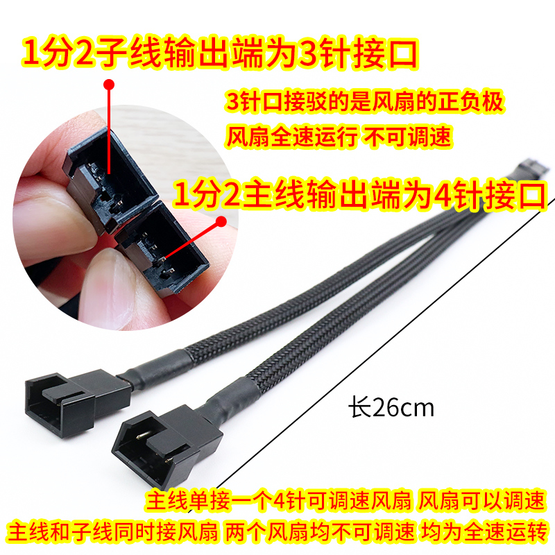 Four-core 4pin fan extension CPU fan cable package network computer heat dissipation 4-pin pwm temperature control line transfer wiring
