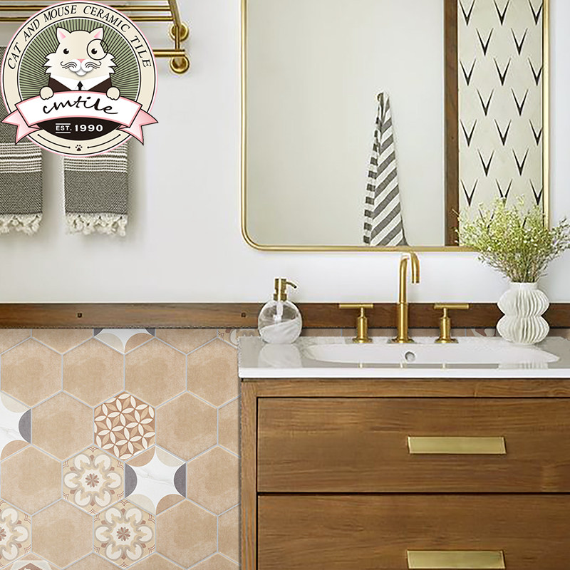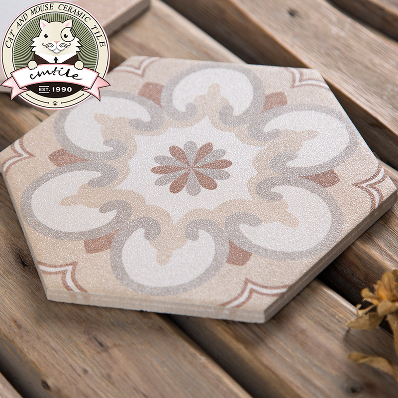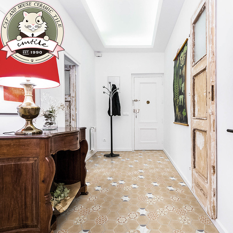 American retro candy glazed hexagonal brick Xuanguan Balcony Small Flower Brick Makeup Room Kitchen Background Wall Brick Abrasion Resistant Tiles