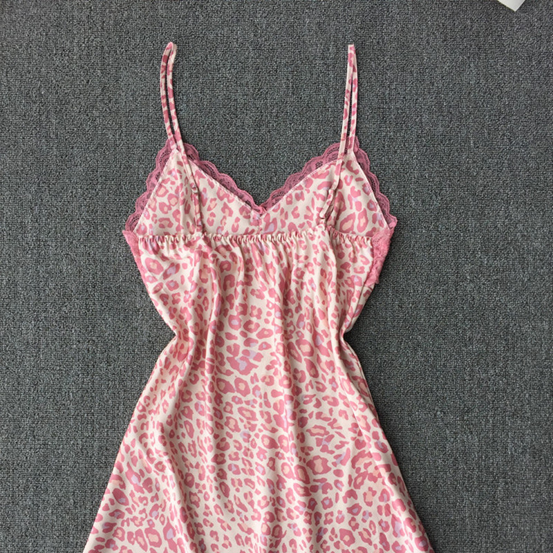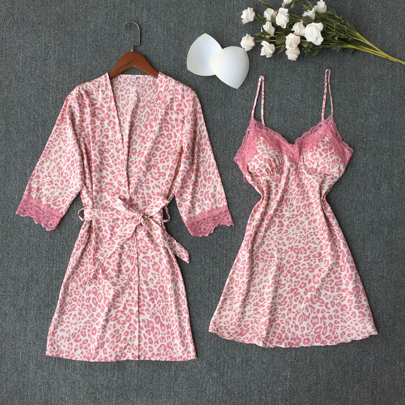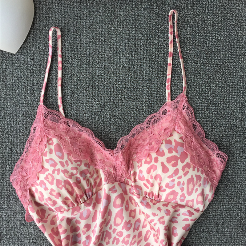 Sexy pajamas summer girl ice silk BAO WEN pink thin section sling nightgown two-piece cute chest pad lace home service