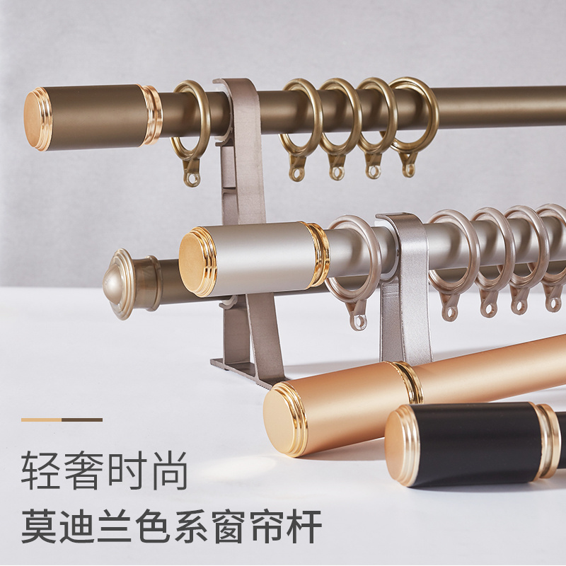 Curtain rod Roman rod Nordic simple mute single and double rod top mounted track rod Black aluminum alloy thickened bracket