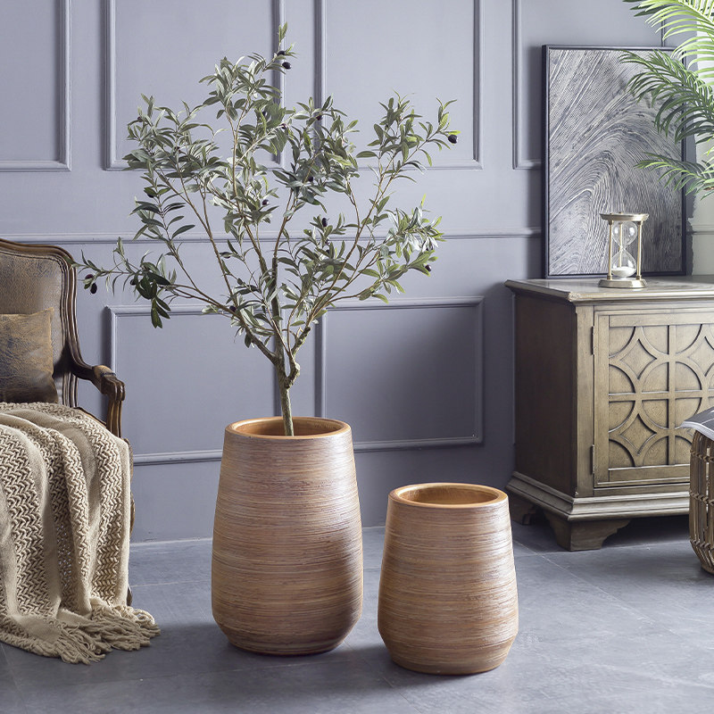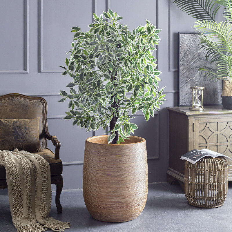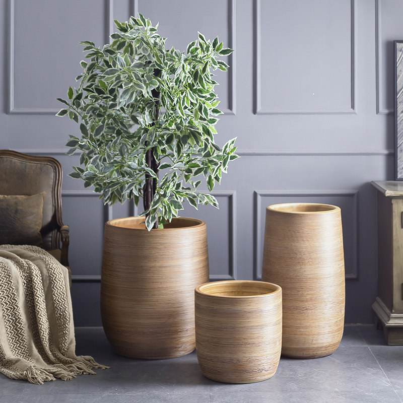 Nordic creative large flower potted modern simple vase ceramic green plant millennium wood hydroponic large diameter planting interior