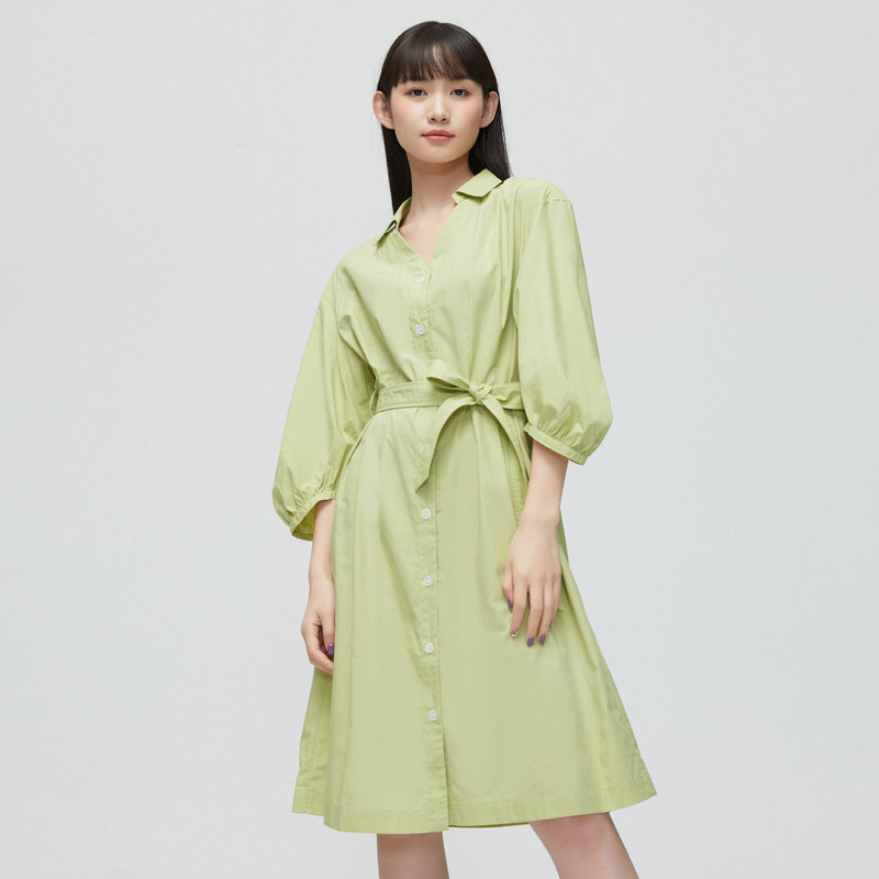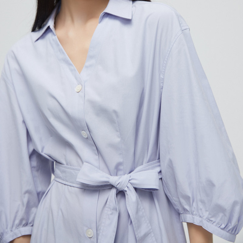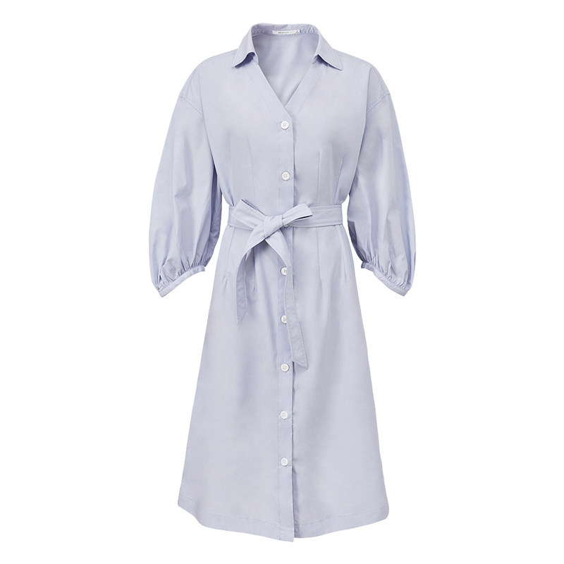 MECITY Women Dress Winter Lacing 70% Bubble Sleeves Mid Length Dress Sexy Light Cooked Wind V Collar Dress 544820