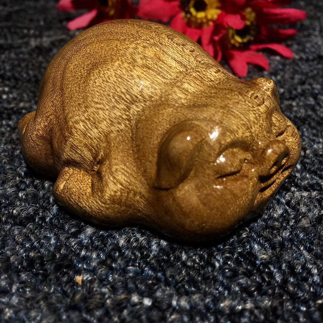 Golden Wire Nanwood Handle Pig Pig Dragon Turtle Solid Wood Round Engraved Pig Hanging Ping Hangcheng