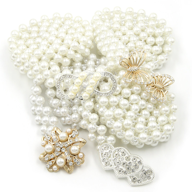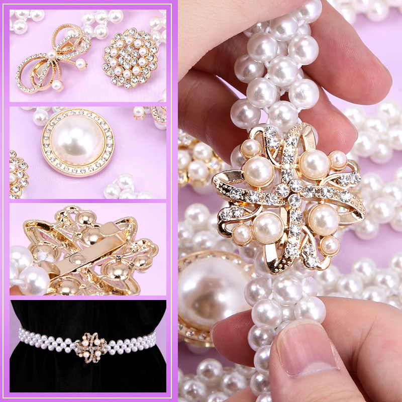 Adjustable waist buckle waist chain button women's elastic decorative dress fashion all-match pearl belt buckle accessories