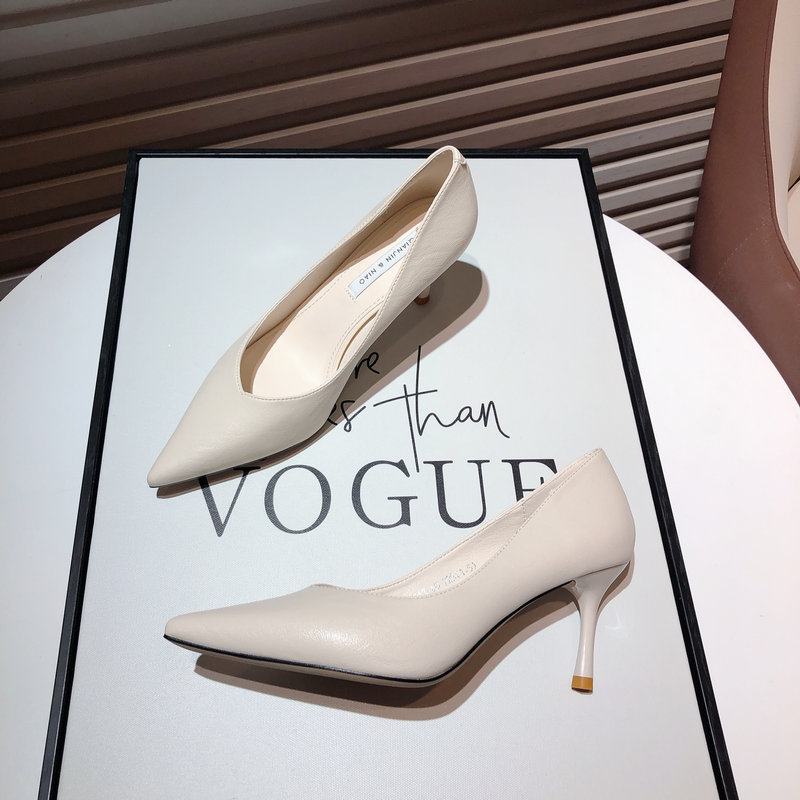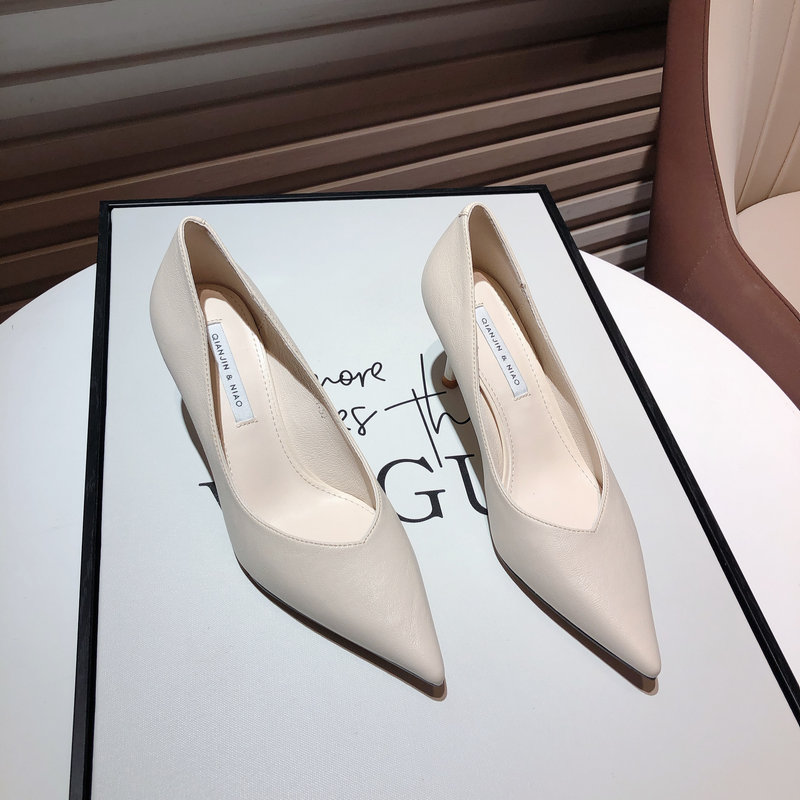 2022 autumn new net red all-match beige sexy single shoes are thin and thin with pointed toe soft leather professional high-heeled shoes women