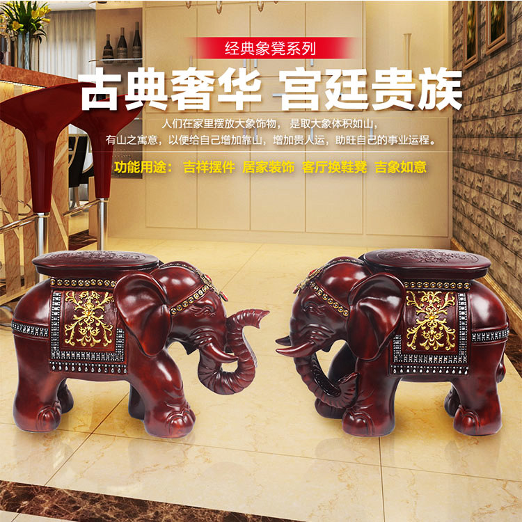Thai Living Room Small Elephant Swap Shoes Den Elephant Changing Shoes Stool Imitation Wood Solid Wood Elephant Stool Chinese Auspicious Elephant Swing