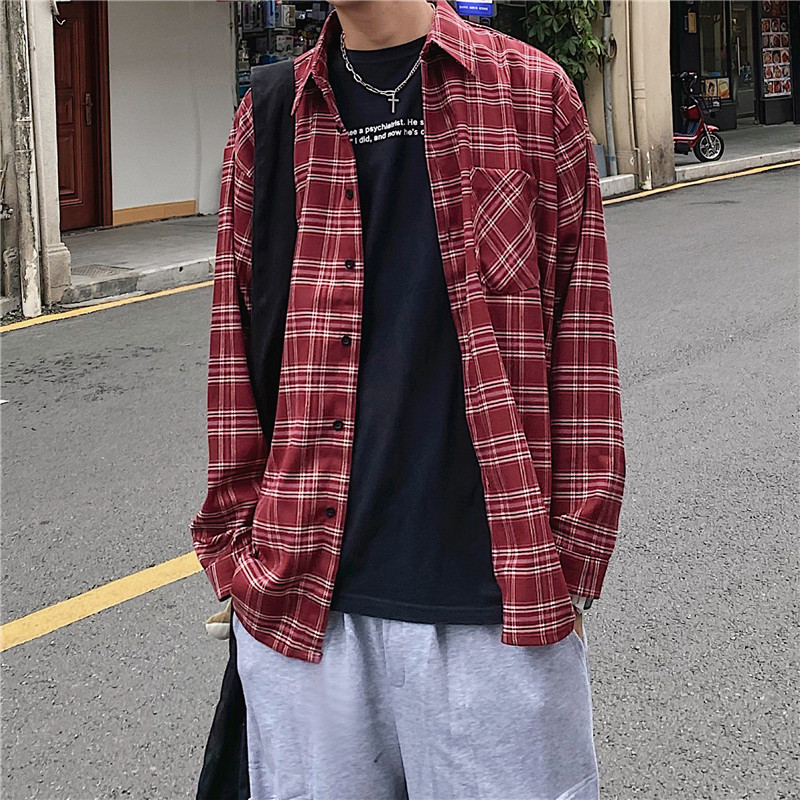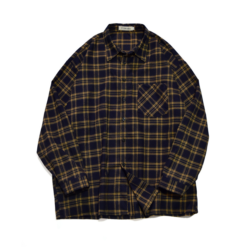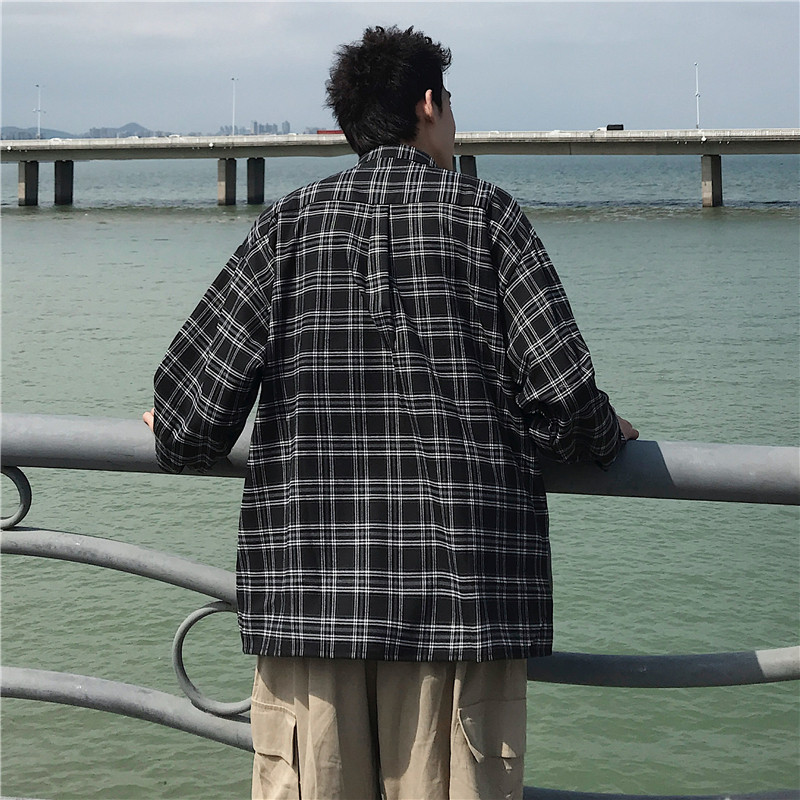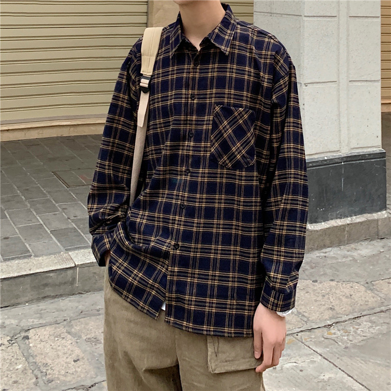 Port Wind Day Ensemble Shirt Male long sleeve Korean version Trend handsome Checkered Plaid Shirt Autumn s Tide Cards 100 lap up clothes