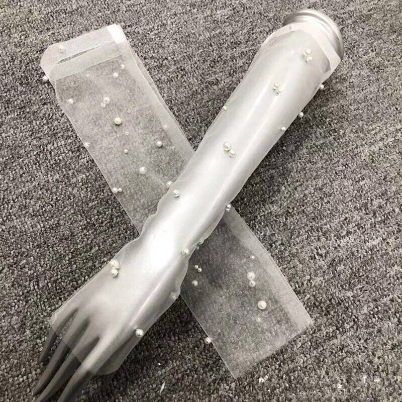 Bridal gloves 2020 new wedding beaded white net red photo gloves travel shooting shadow mesh wedding dress long version