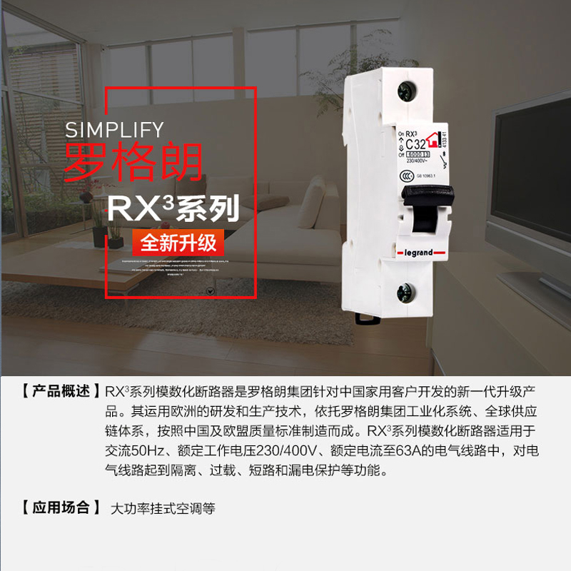 Legrand legrand circuit breaker air switch total open household switch 2P 40A short circuit protection tcl