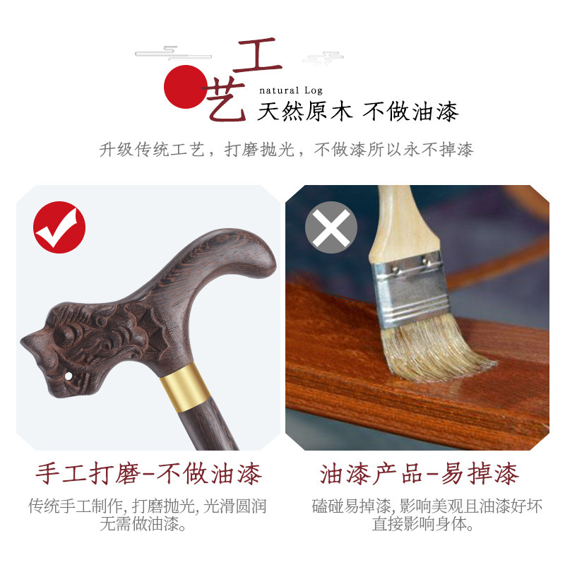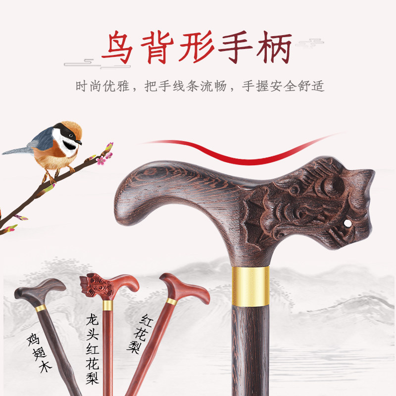 Elderly crutches anti-slip Elderly crutches Four-legged dragon head crutch wood cane Solid wood light crutches armrest
