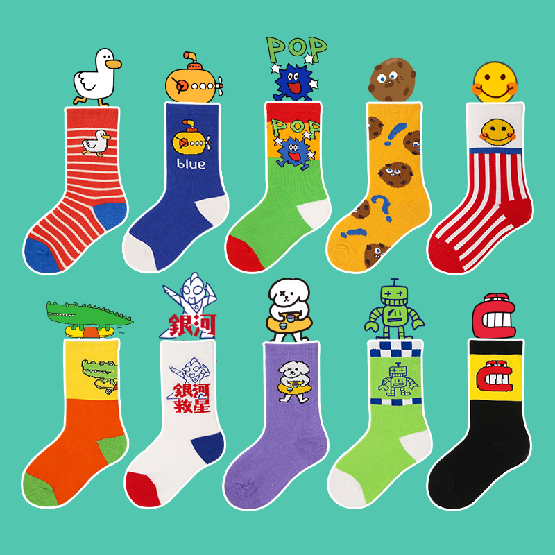 Children's socks Medium tube socks Pure cotton spring and autumn girls 'socks Boys' stockings Korean tide socks Thin high tube sports