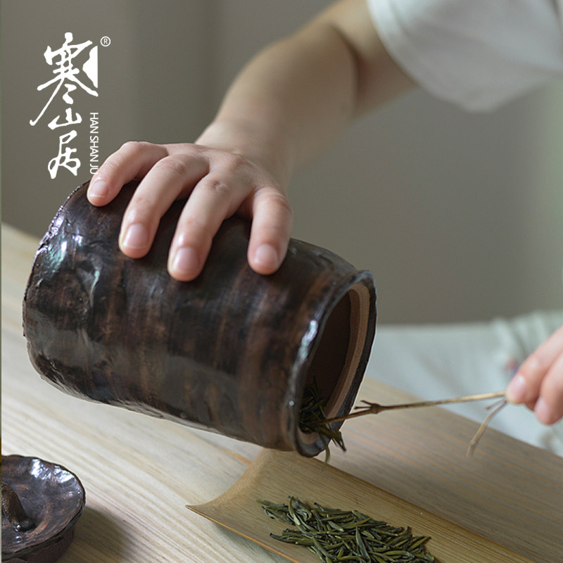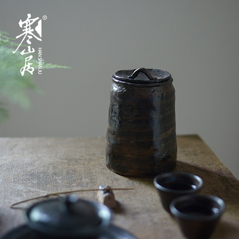Hanshanju Zhiye glaze tea pot hand-made rough pottery storage tea pot Japanese retro tea into ceramic storage pot sealed pot