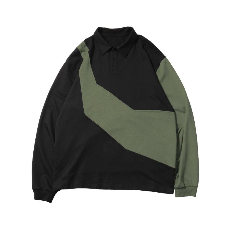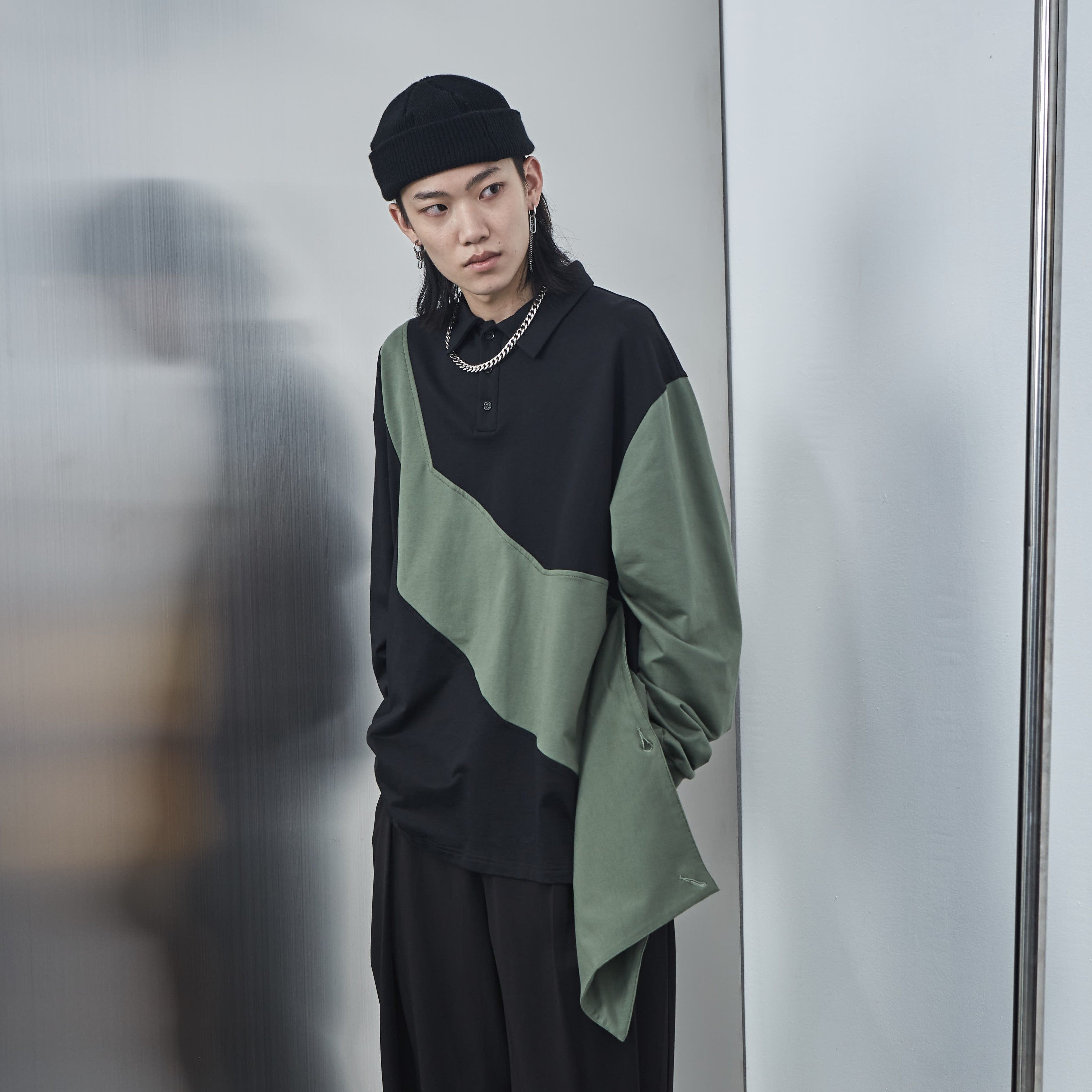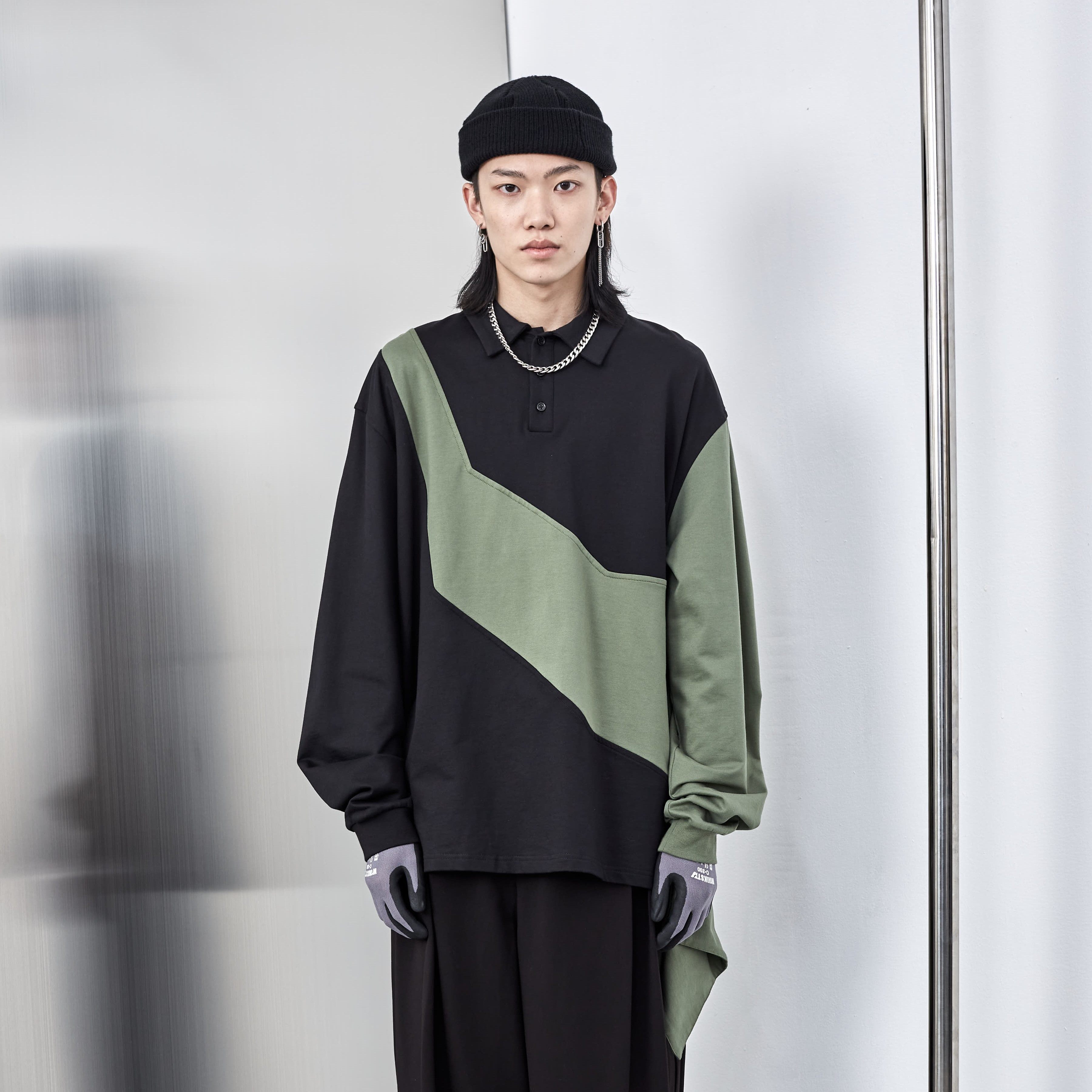 PCLP (PERCLIPS)color POLO shirt lapel sweater National tide brand spring and autumn loose stitching contrast color long sleeves men