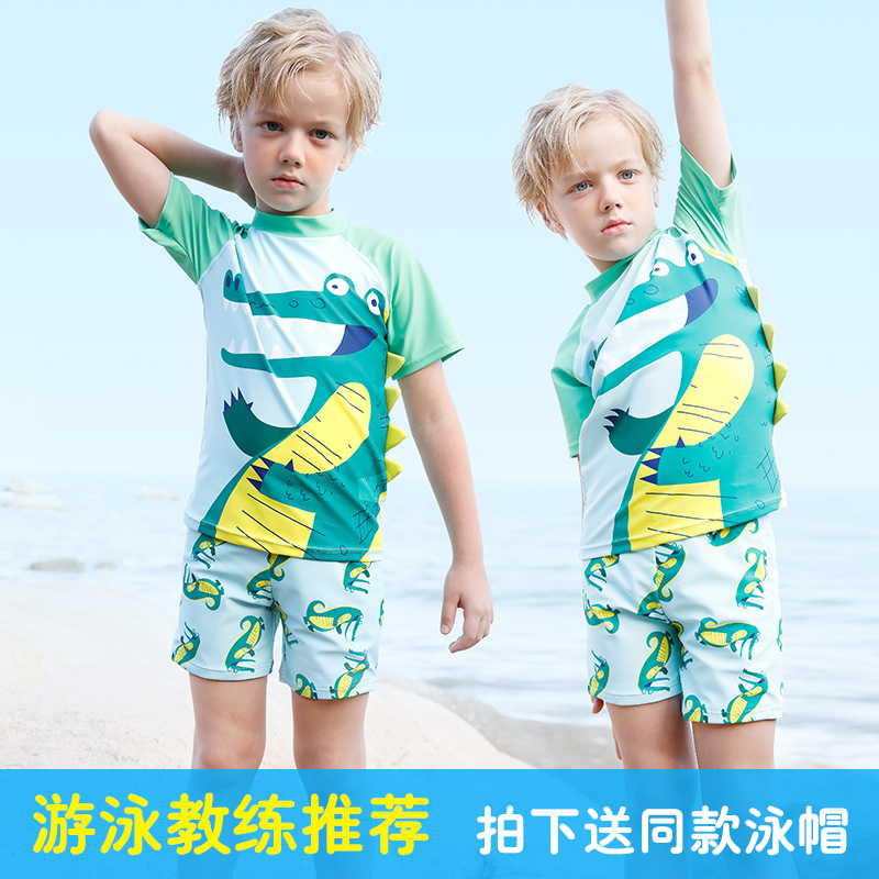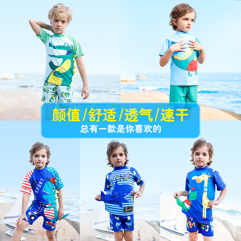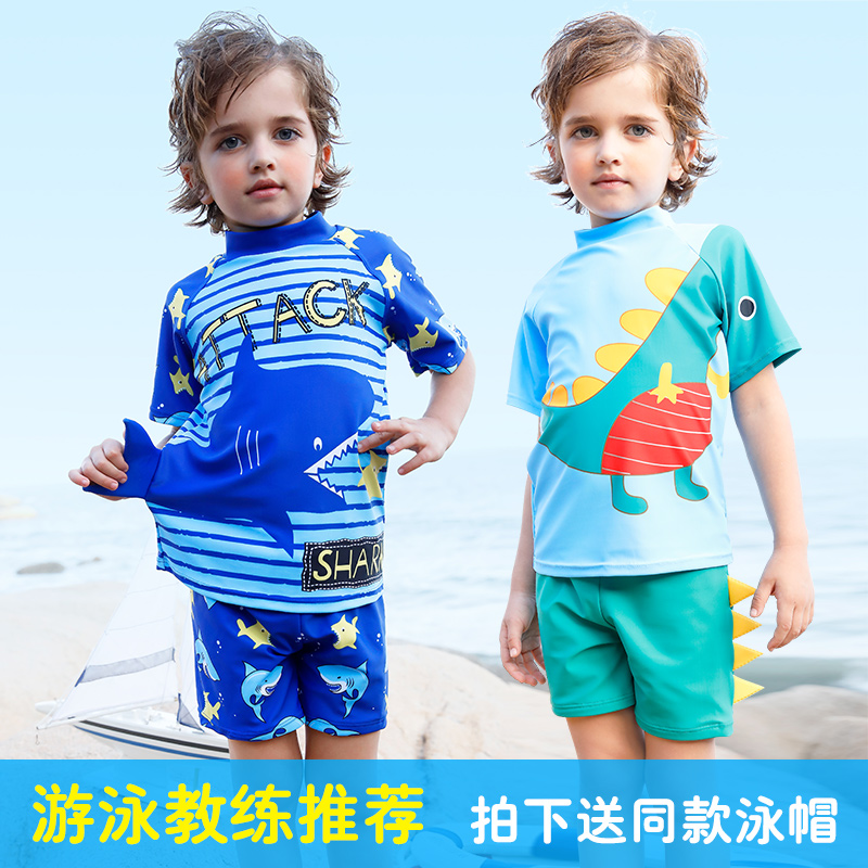 Children's swimsuit Boys small, medium and large children's split swimsuit Boys baby one-piece sunscreen swimsuit Swimming trunks set equipment