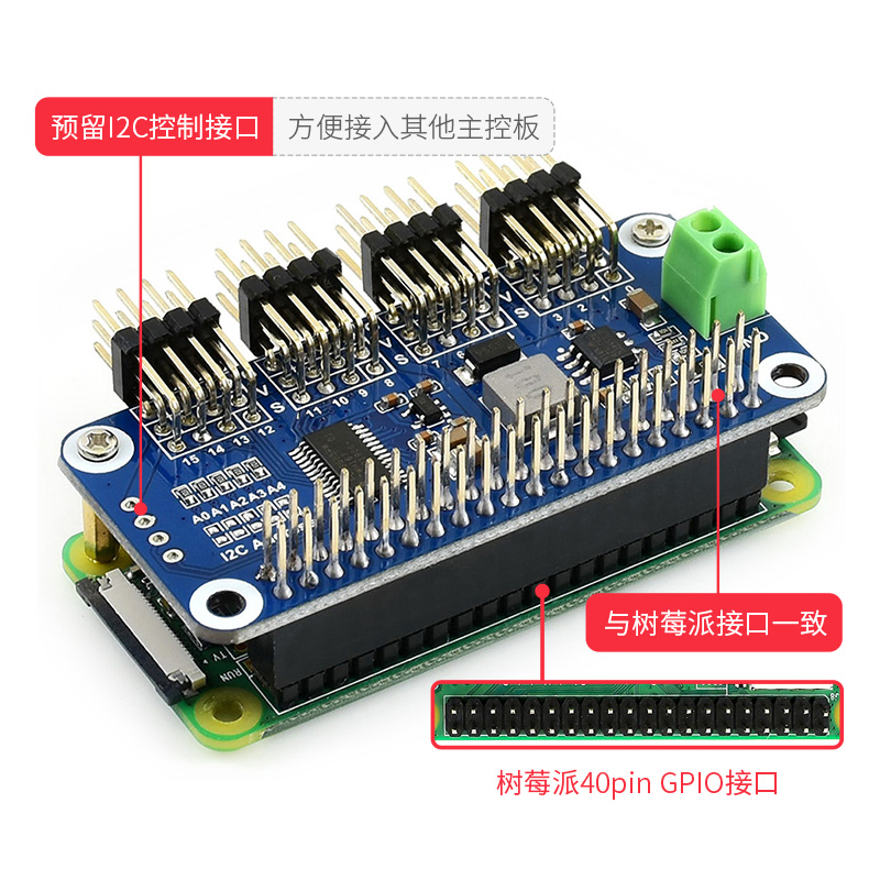 Raspberry Pi 4B 3B 16-way steering gear driver board I2C interface PWM control manipulator trolley module accessories