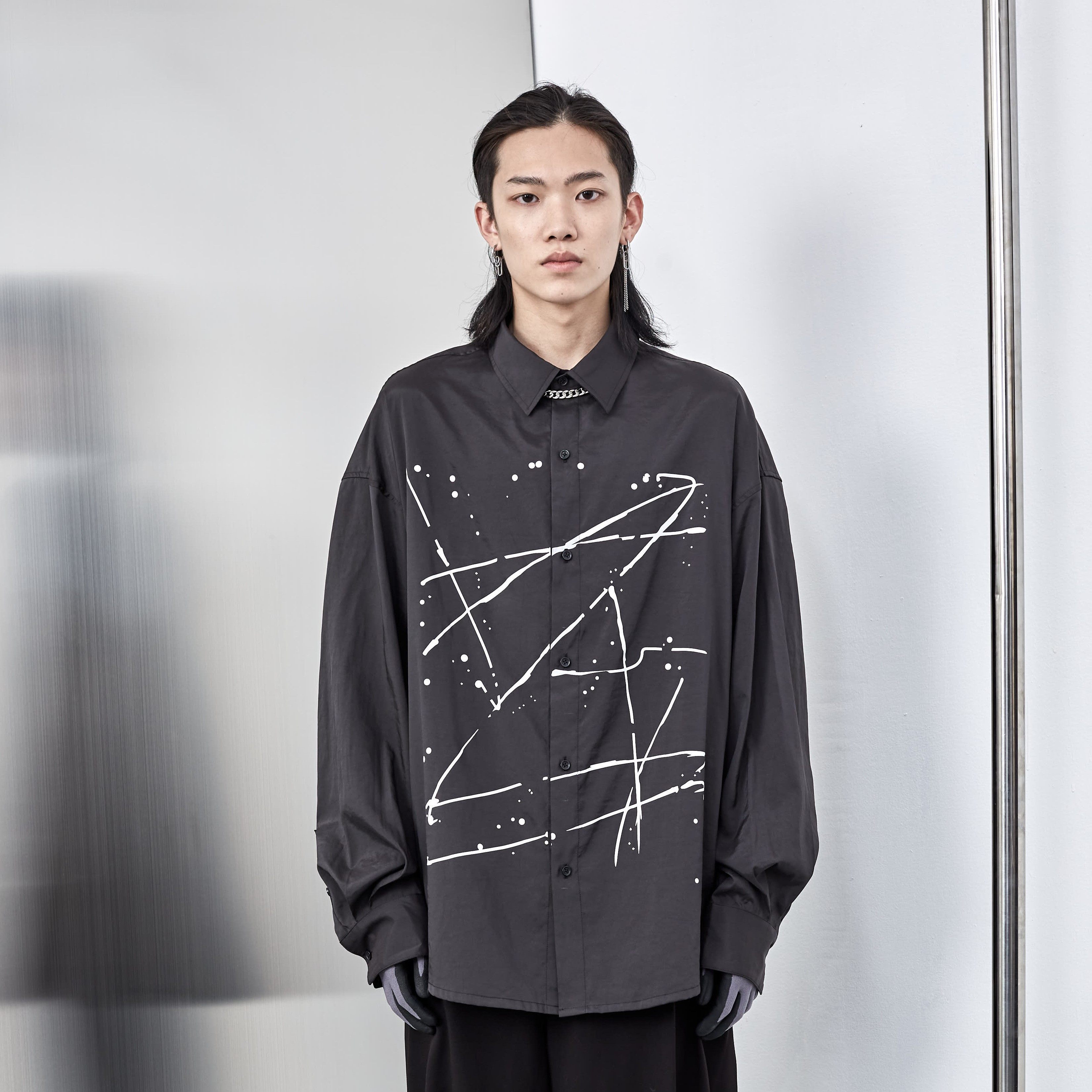 PCLP(PERCLIPS) splashing ink shirt trend Japanese national fashion brand men and women long sleeve coat shirt