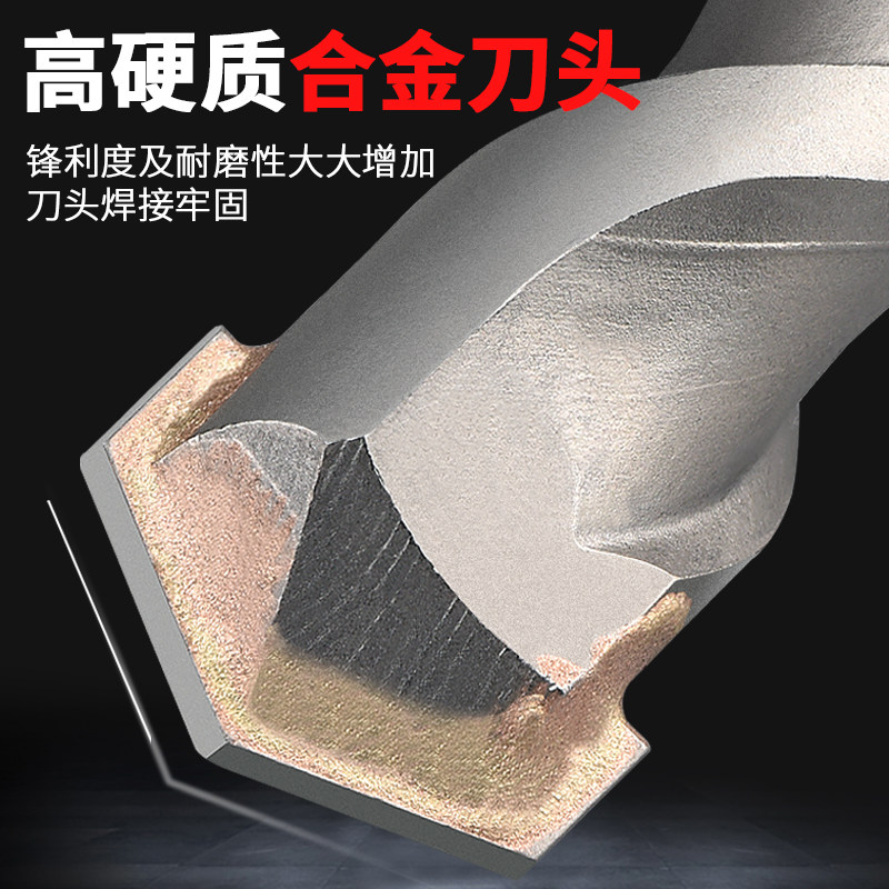 Lengthened impact electric hammer drill bit through the wall, two pits, two grooves, round handle, four pits, square handle concrete cement wall drilling drill