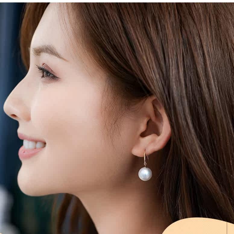 Nanyang Owhite Pearl Great White Natural Sea Water Australia White Ear Hook Earrings Quality 18k Gold And Silver Blue Cold Light Ear Needle Earrings