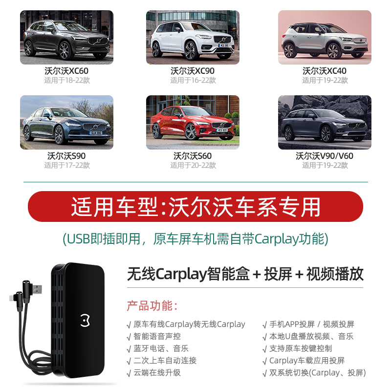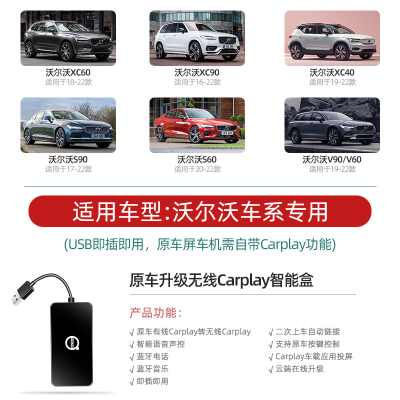 Apple version (upgrade wireless Carplay pitching screen film to play) Volvo Private Apple Edition (Upgrade Wireless Carplay Smart Box) Volvo Private