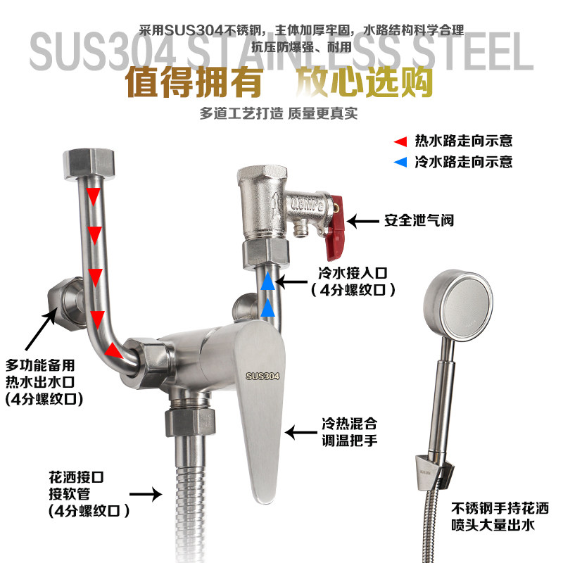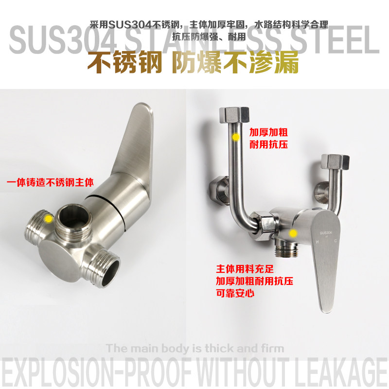 SUS304 stainless steel electric water heater mixing valve Surface switch hot and cold mixing valve U-type outlet faucet set