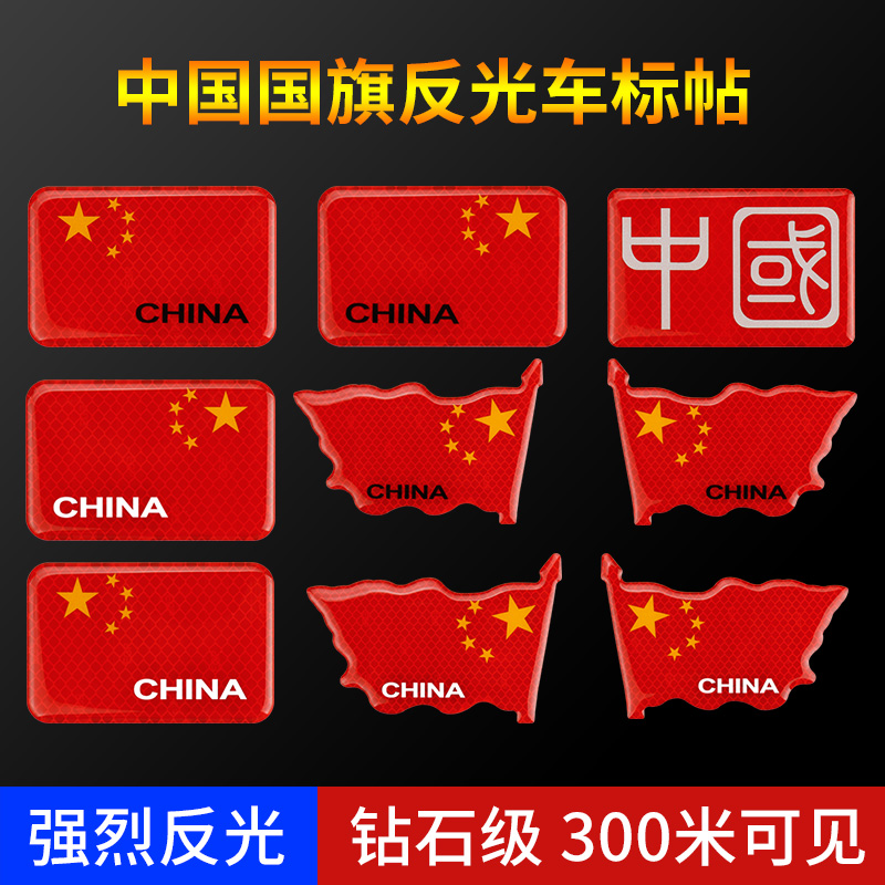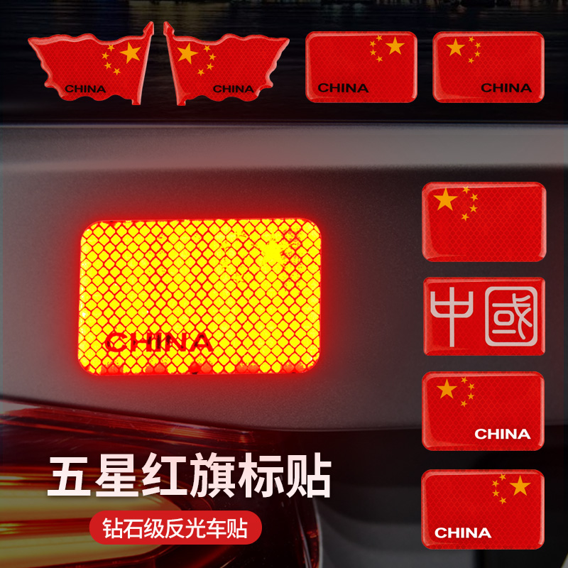 Reflective national flag car sticker five-star red flag body logo car 3D stereoscopic sticker China decorative sticker to cover scratches