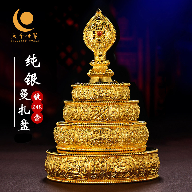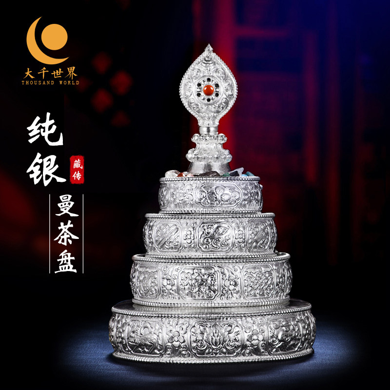 Tibetan Buddhism S999 Sterling Silver Manza Tray for Manza Repair 37 Pile Mancha Luo With Tray Full Set 10cm Manza
