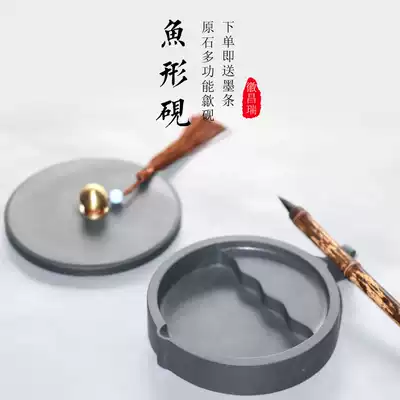 Natural stone multifunction fish inkstone beginner-level students she chao jing xiao kai zhong kai is large calligraphy calligraphy and painting stone pool ink dish four treasures of the study bi mo zhi yan