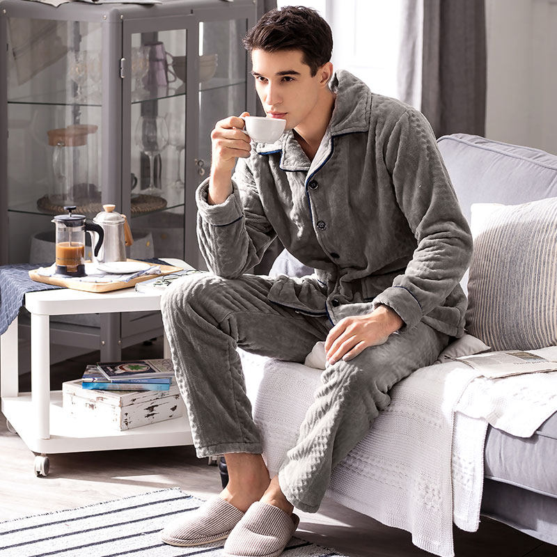 Finnten autumn winter men's pyjamas cardiff Coral Fleece Korean version Leisure thickened large size Flannel Suede Home Suit Suit