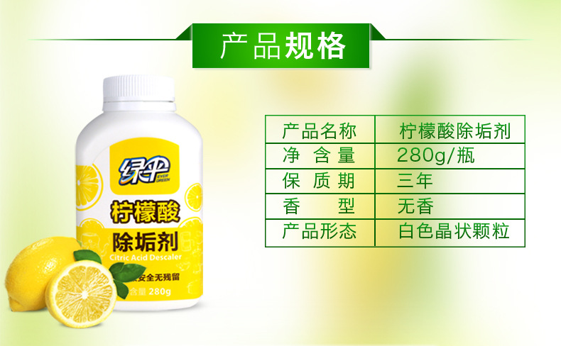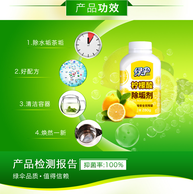 Green Umbrella Citric Acid Powerful Descaling Agent 280g Water Scale Tea Scale Bacteriostatic Quick Cooking Pot Drinking Water Dispenser Wash Food Grade