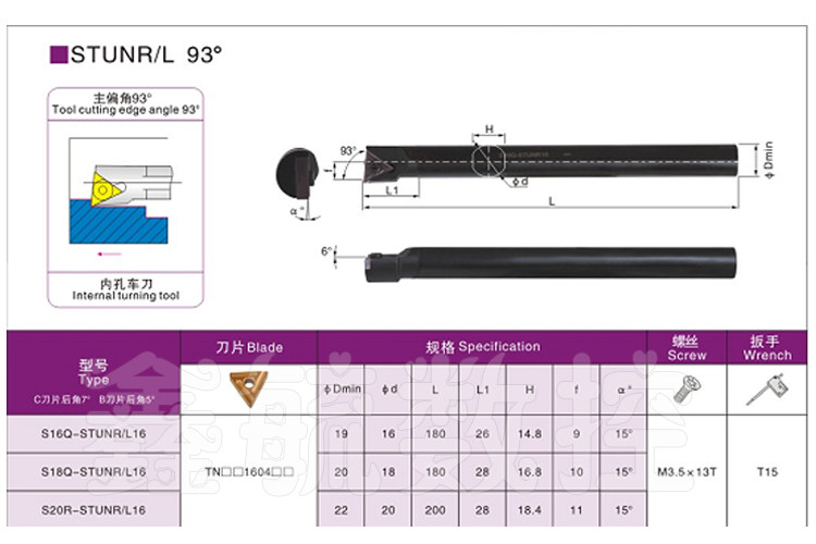 STUNR inner hole car knife 93 degrees S16 triangular double-sided blade TN1604 lathe with knife lever boring inner circle cutter