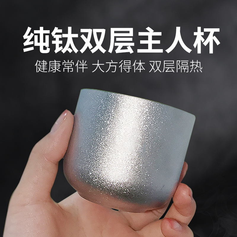 Pure titanium tea cup single tea cup double-layer anti-scalding small tea cup Kung Fu tea set master cup household tea cup lettering