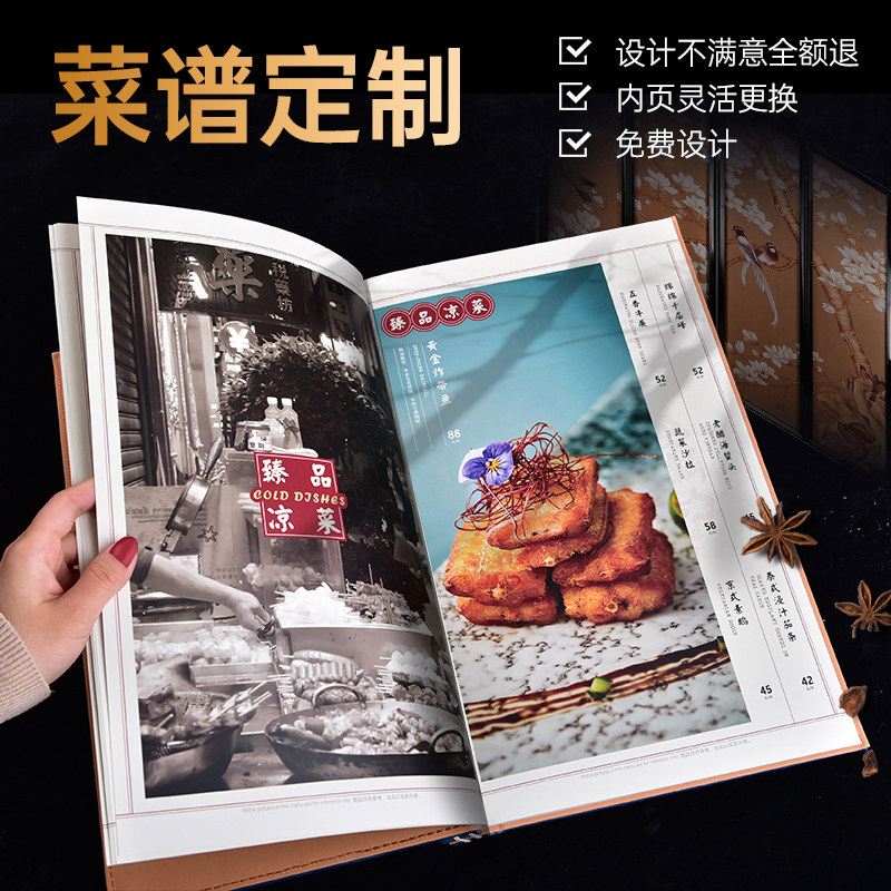 High-grade hardcover shell menu design and production recipes make custom menu loose-leaf book insert price list ordered to make Chinese restaurant hot pot barbecue net red Sichuan menu A4 waterproof leather noodles