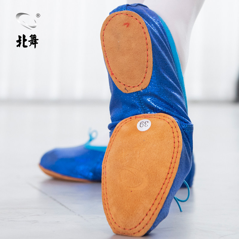 North Dance Female Blue Small Dense Dot Ballet Dance Shoes Soft Bottom Belly Leather Dance Practice Shoes Two Bottoms Dance Shoes Yoga Shoes