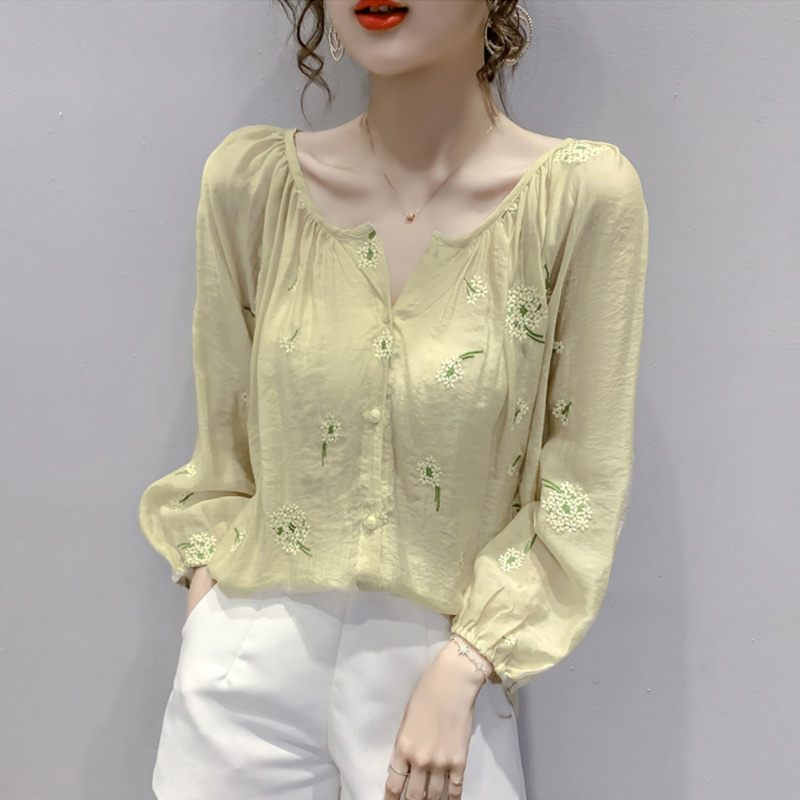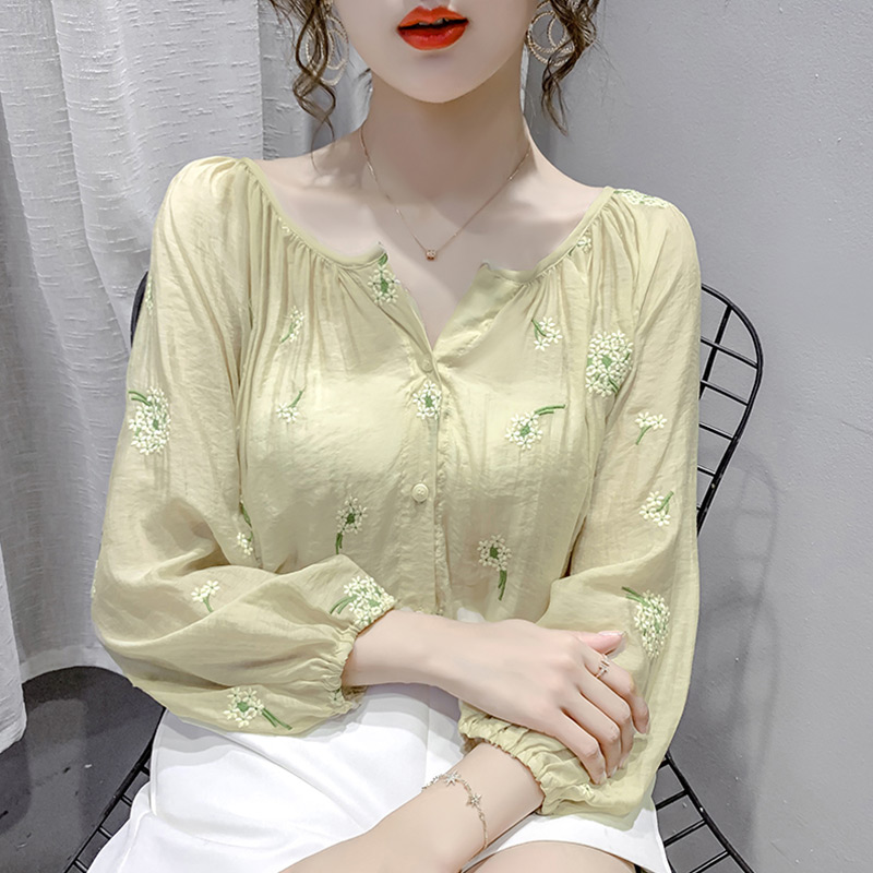 Retro Embroidered Snowspun Shirt Woman Design Sensation Small Crowdspring Autumn Clothing 2022 New style Bubble Sleeves Crumbles