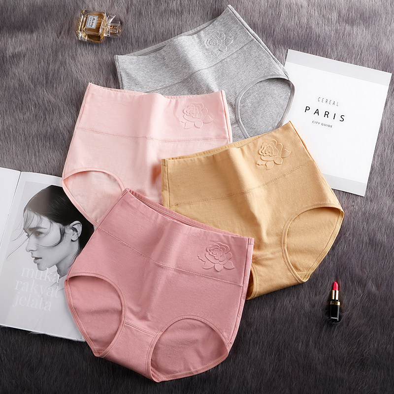 High waist panties women's pure cotton postpartum belly control buttocks embossed cotton bottoms summer thin section comfortable breathable briefs