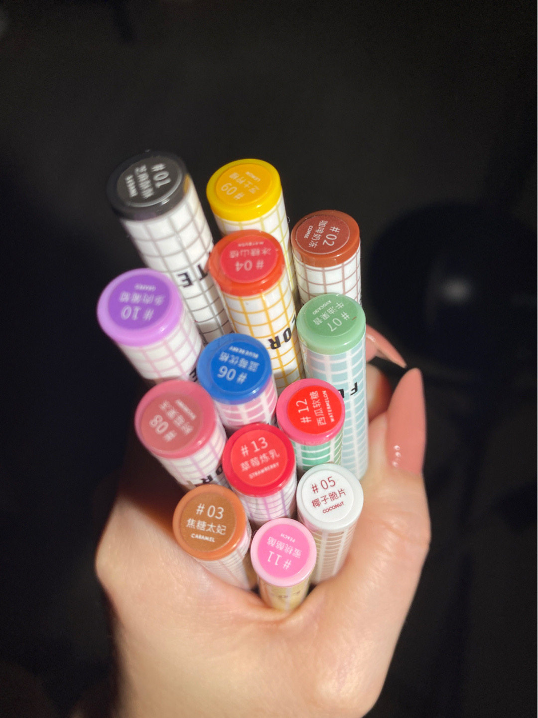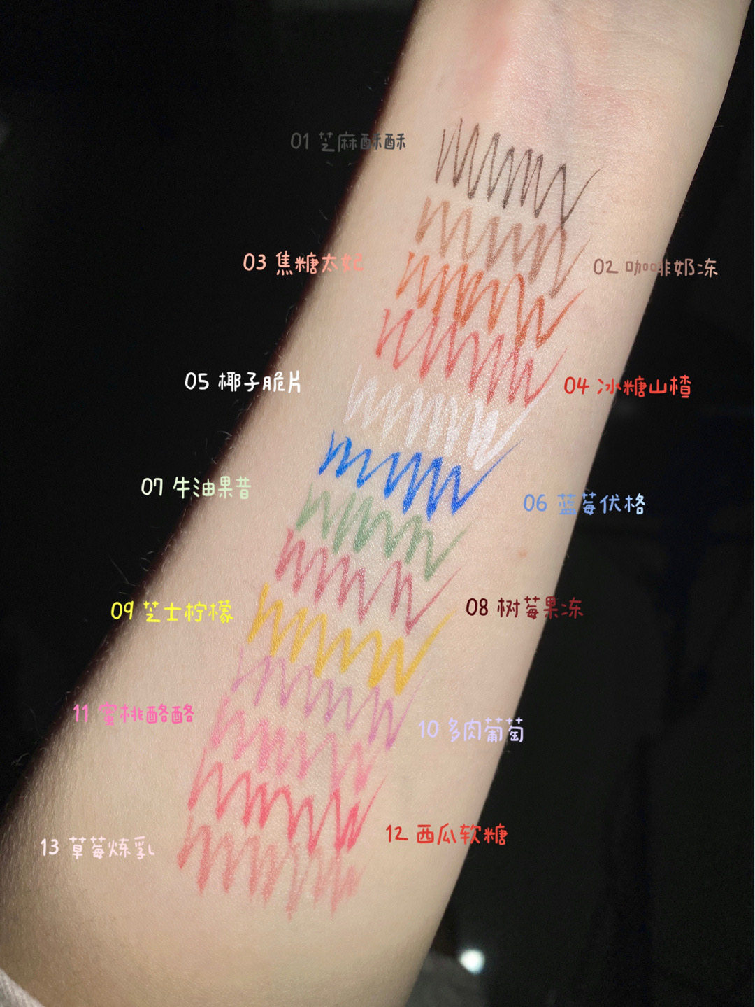 01 # Sesame Crisp (black) liquid pen 02 # coffee milk jelly (brown) liquid pen 03 # caramel coffee 04#冰糖山楂05#椰子脆片06#蓝色优格07#