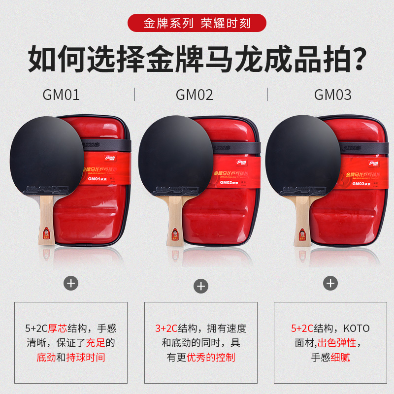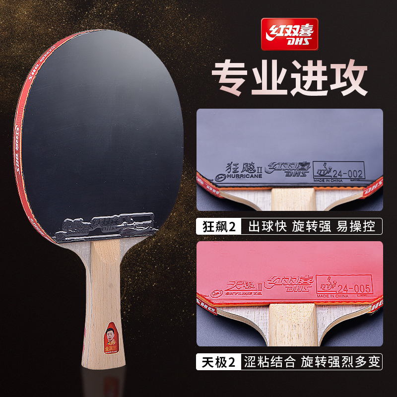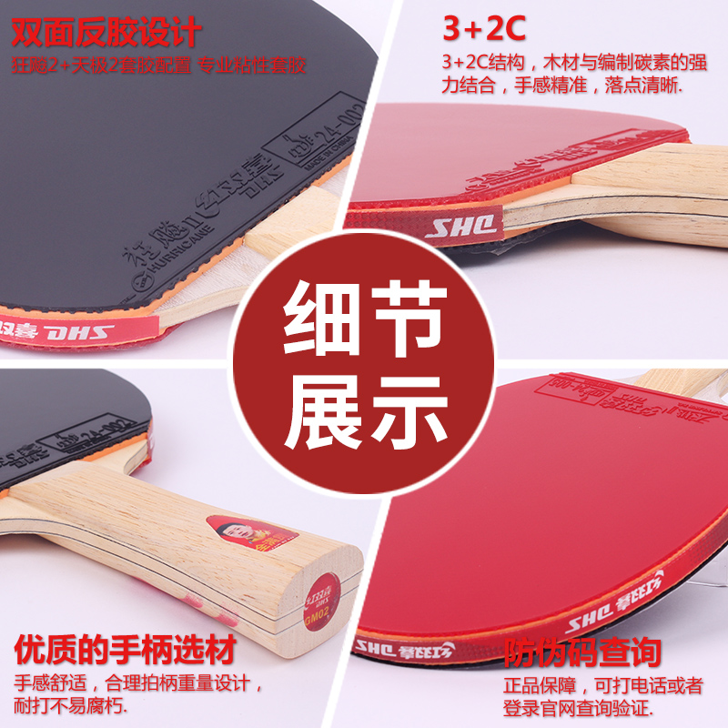 Red Double Happiness Table Tennis Racket Champion Ma Long the same racket professional grade ping-pong racket single racket carbon eight star bottom plate