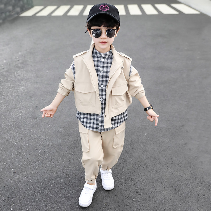 Boy Clothing Boy Autumn Clothing Three Sets Of Suits 2021 Spring Autumn New 2021 Spring Festival Children's Ocean sends Han version handsome