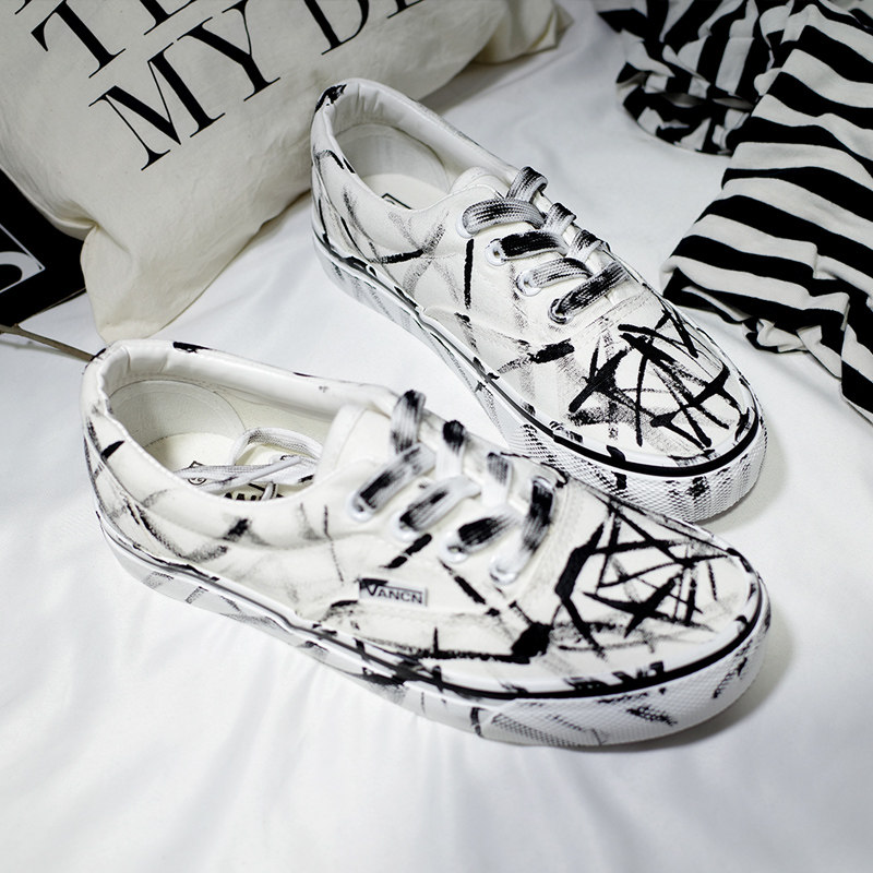 2022 Street Shooting Couple Shoes Men's Ins Super Fire Canvas Shoes Harajuku Low Help Students Black Splashing Ink Small White Shoes Women