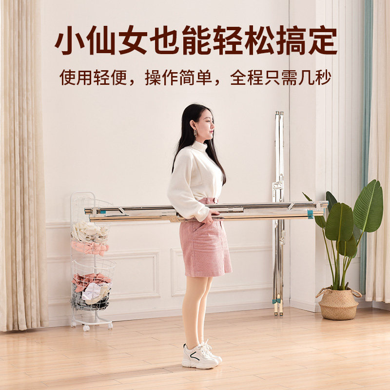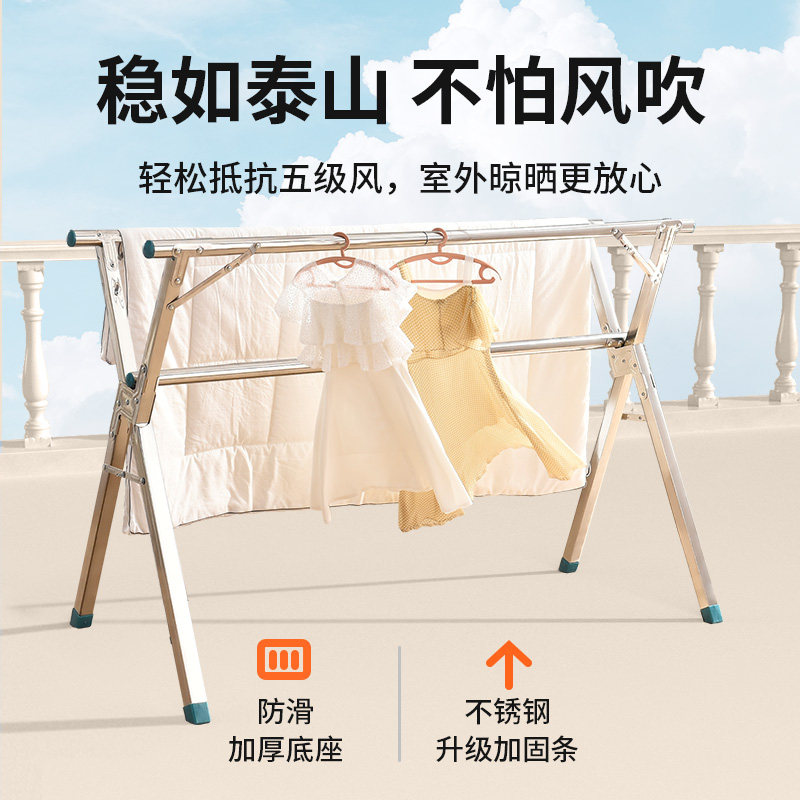 Drying rack floor-to-ceiling folding indoor balcony sunburner artifact stainless steel ground double pole free installation rail